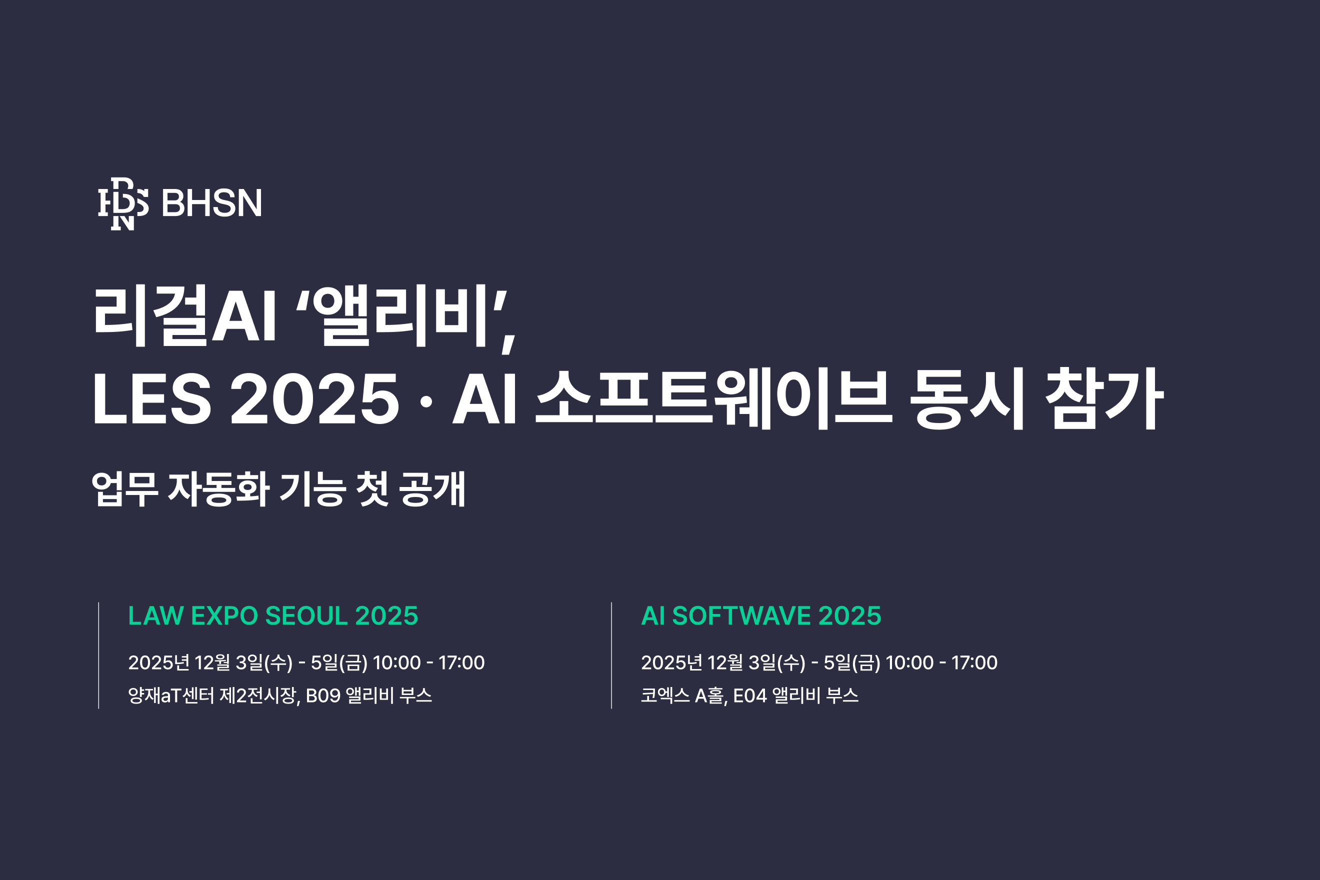 [보도자료] 리걸AI ‘앨리비’, LES 2025·AI 소프트웨이브 동시 참가… 업무 자동화 기능 첫 공개